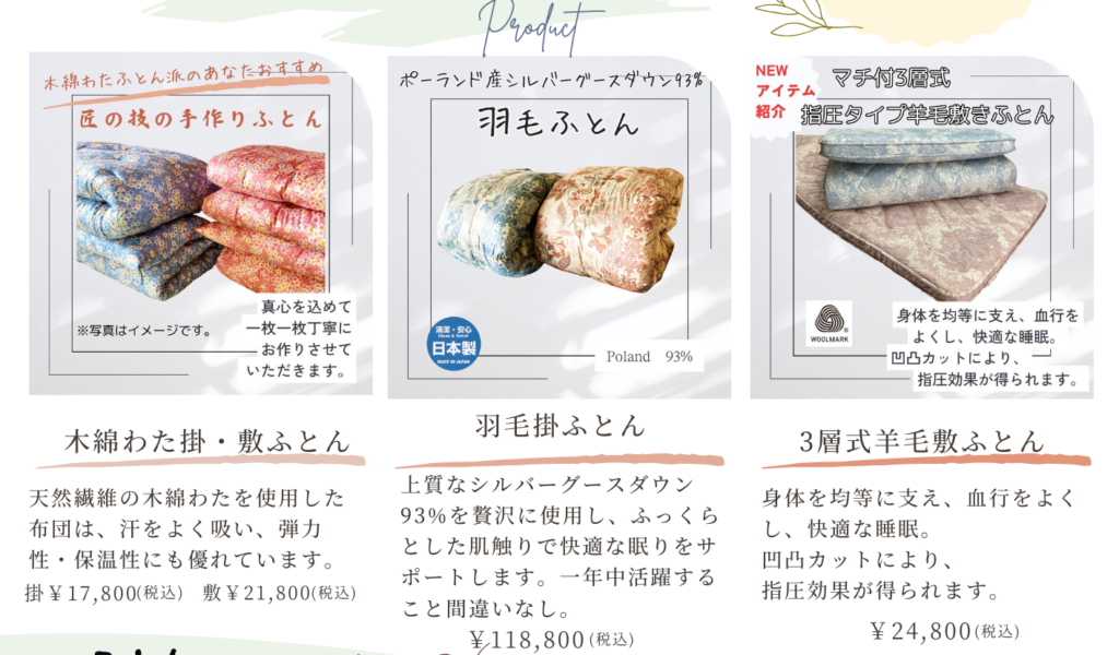 『おふとんお手入れキャンペーン』開催中です。大切なおふとんの、お手入れ!見直し!をしてみませんか?