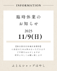 ふとんショップはやしも出店しますので、