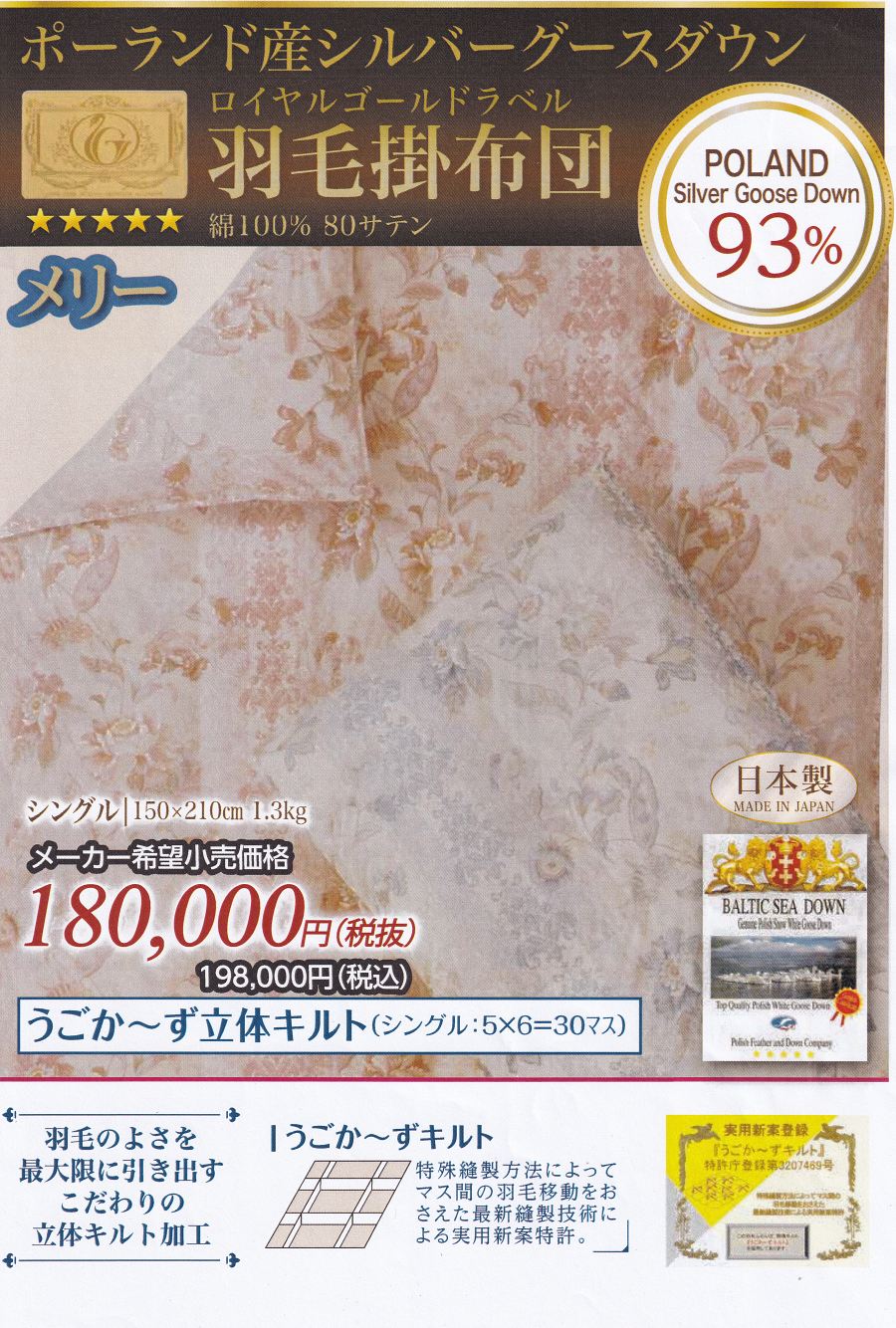 ・詰 物:ポーリッシュシルバーグースダウン93% 1.3㎏