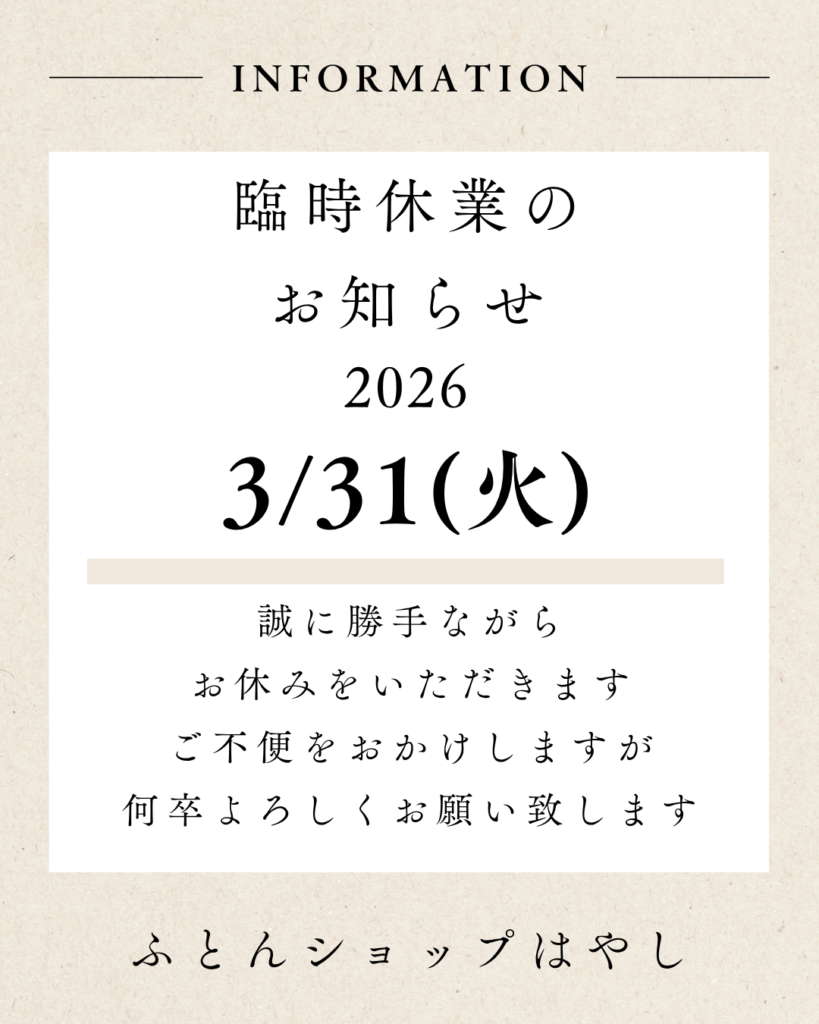 平素より「ふとんショップはやし」をご利用いただき誠にありがとうございます。